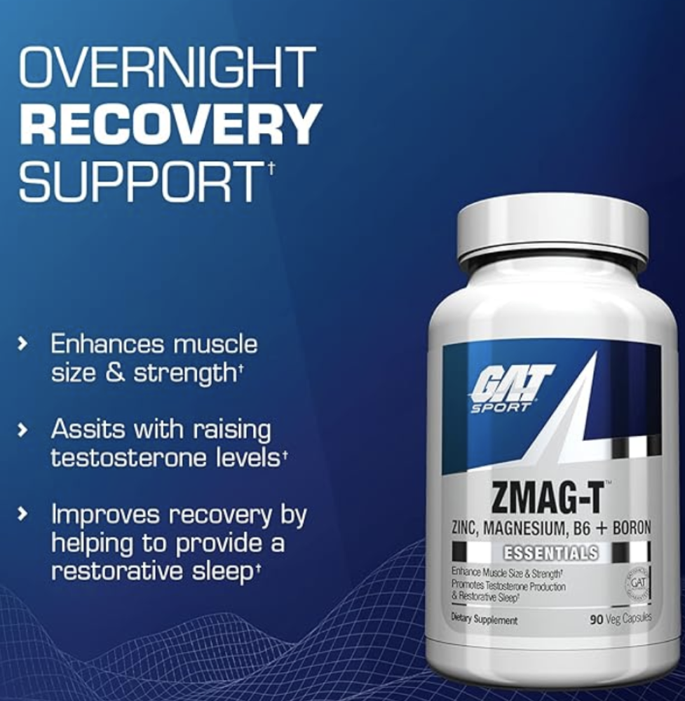مكمل ZMAG-T من GAT Sport هو صيغة مطورة تحتوي على الزنك، المغنيسيوم، فيتامين B6 والبورون.