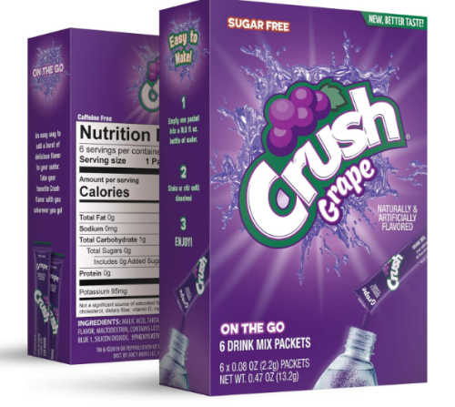 طعم العنب المركز والمنعش بدون أي سكر – منكه ماء كراش بنكهة العنب يضيف لمياهك انتعاش ولذة في كل رشفة.