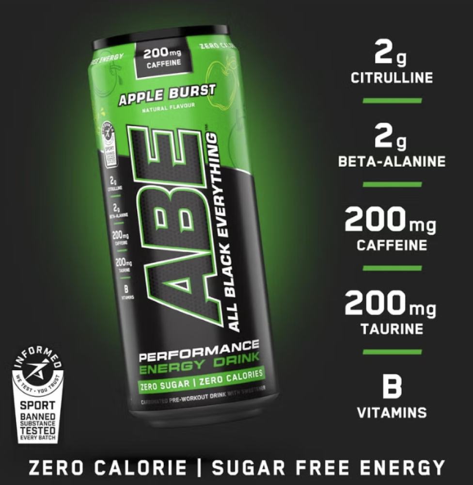 اشحن طاقتك مع مشروب الطاقة ABE Energy Drink – Apple Burst من Applied Nutrition، المصمم ليمنحك تركيزًا ذهنيًا حادًا وطاقة قوية قبل التمرين أو خلال يومك النشط. يحتوي على تركيبة متوازنة تشمل 200mg كافيين، 2g بيتا ألانين، 2g سيترولين، وفيتامينات B لدعم الأداء الرياضي والذهني.