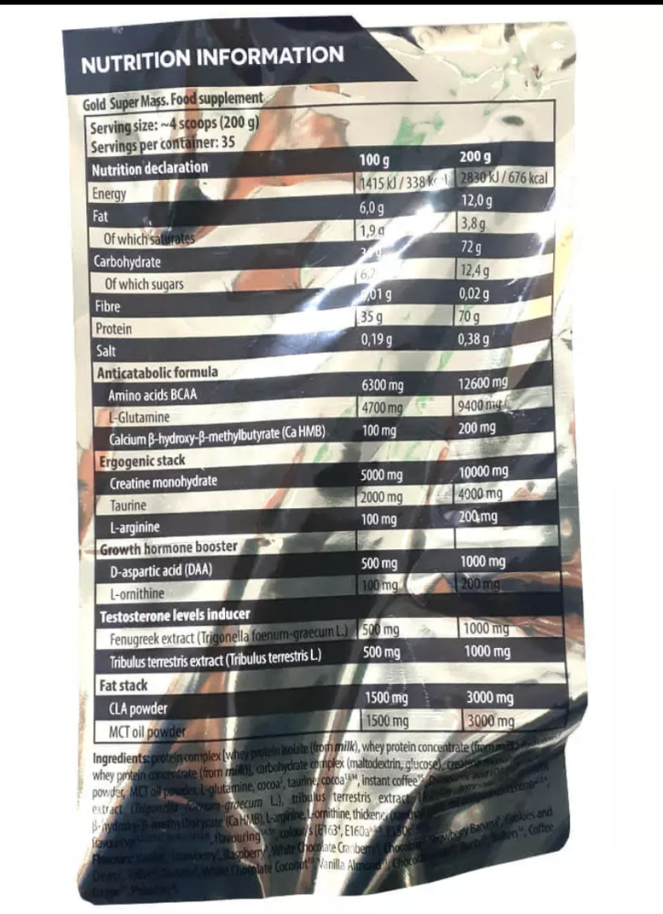 احصل على أقصى دعم لزيادة الكتلة العضلية مع Gold Super Mass من سلسلة Kevin Levrone Signature.