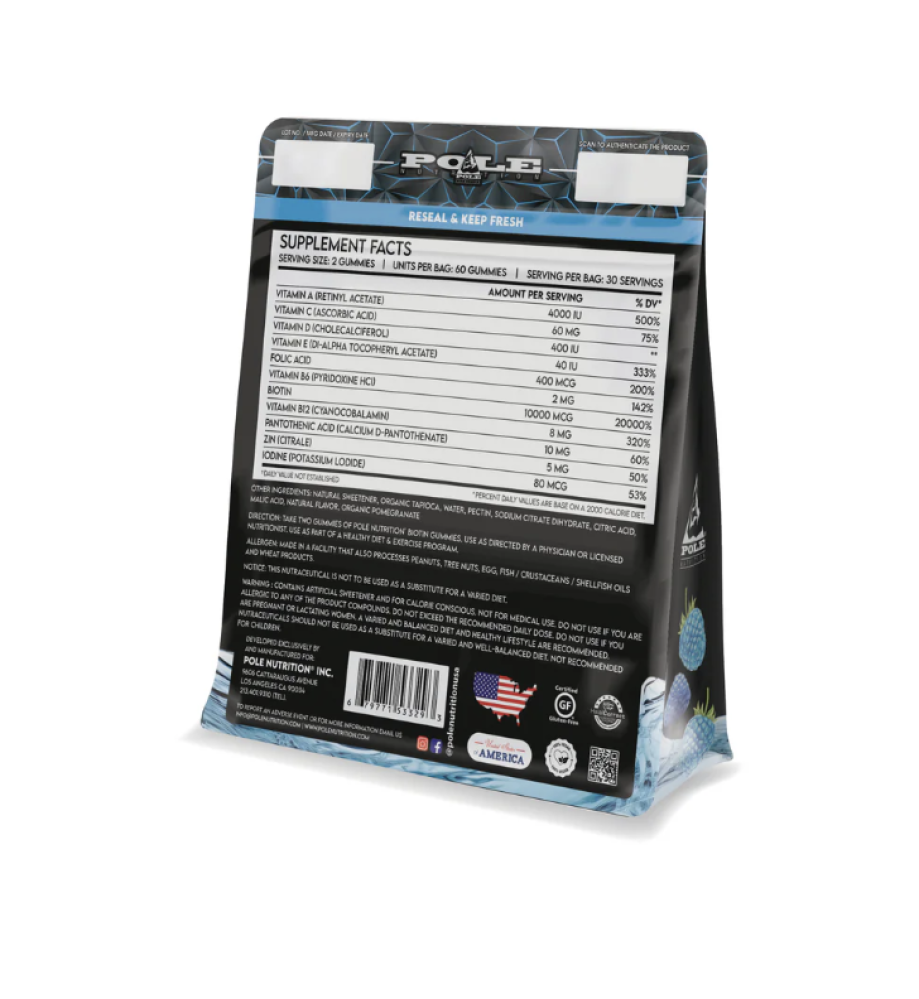 Pole Nutrition – Biotin Gummies 10000mcg (Blue Raspberry Flavor)