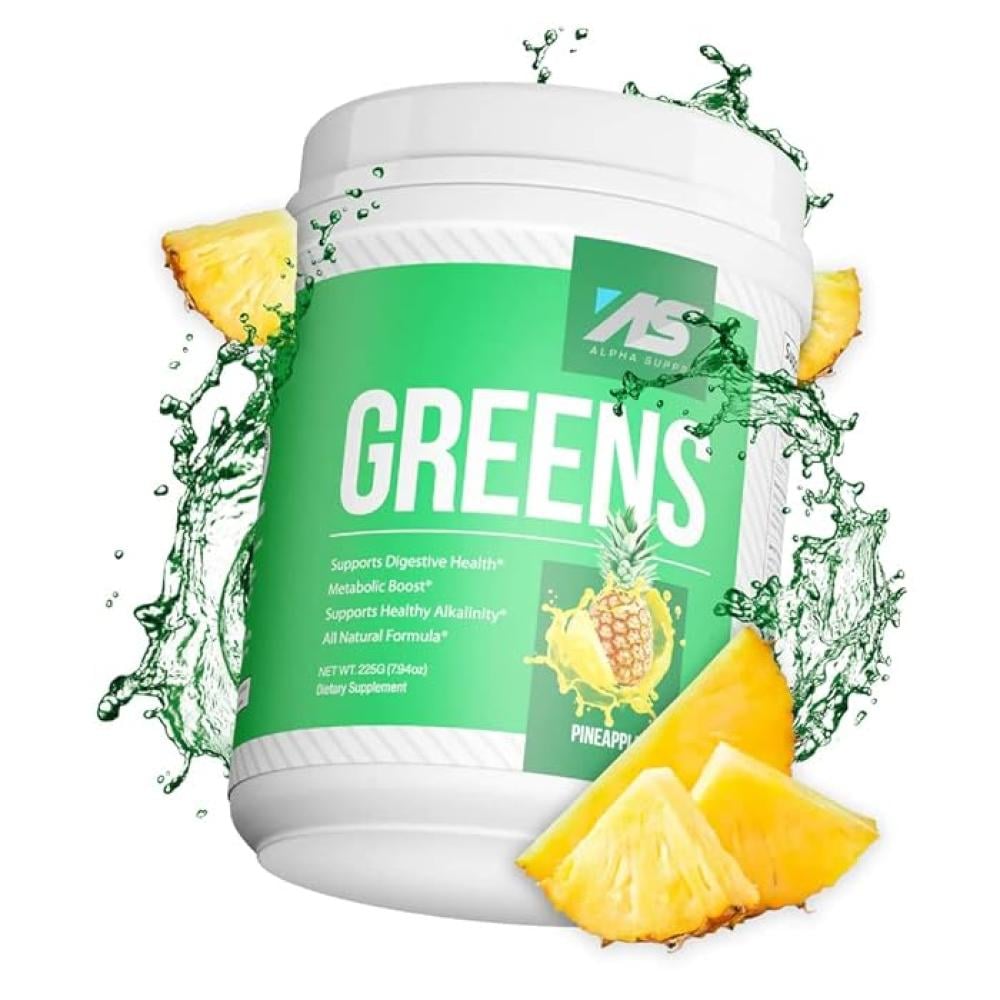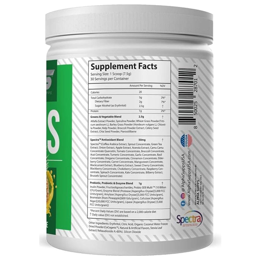 مكمل ألفا جرينز - مسحوق سوبر فود من الفواكه والخضروات لدعم الهضم (30 جرعة - نكهة أناناس) 🍍🌱
