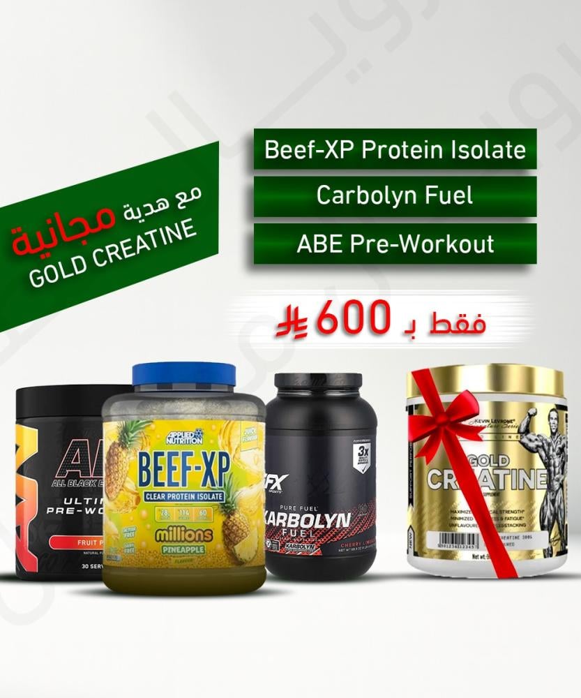 احصل على أقوى باقة مكملات لبناء العضلات والطاقة بسعر استثنائي 600 ريال فقط، مع هدية مجانية GOLD CREATINE لتزيد من قوة أدائك ونتائجك في التمرين!