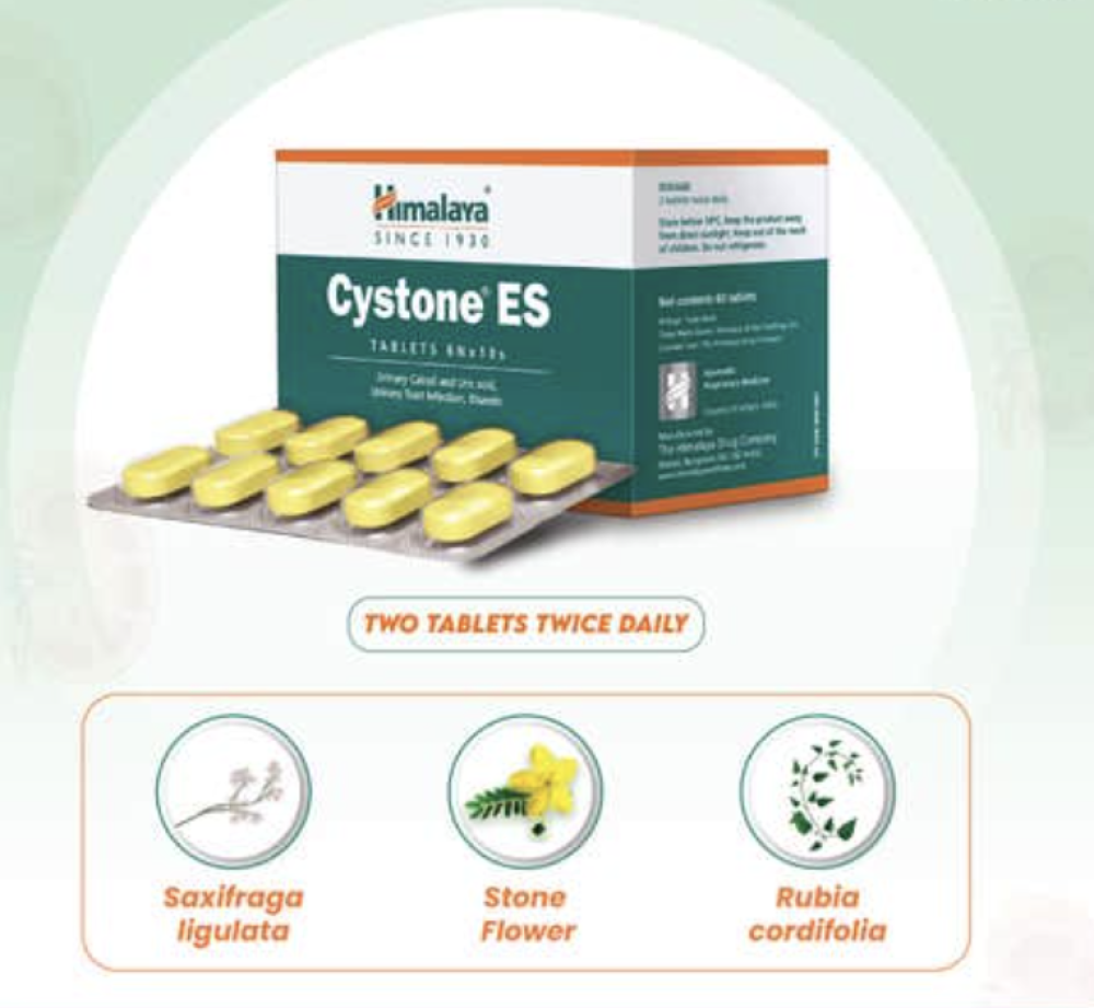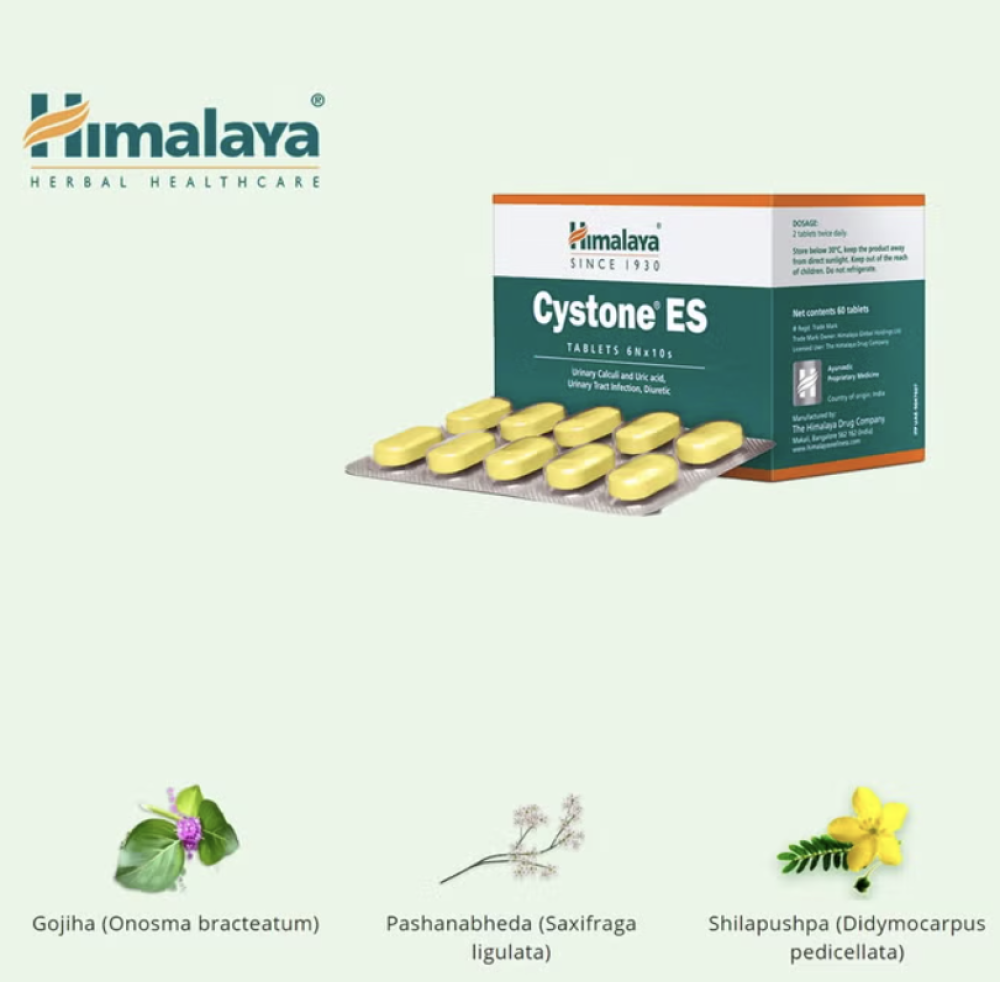 أقراص Cystone ES من Himalaya تركيبة عشبية طبيعية فعّالة للمساعدة في دعم صحة الكلى والمسالك البولية.